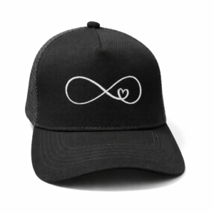 Esta gorra bordada con el símbolo de infinito fusionado con un corazón representa unión, amor y conexión eterna.